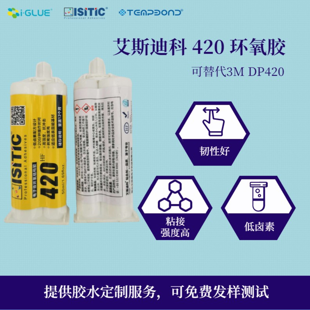 1、艾斯迪科雙組份環(huán)氧膠420是低鹵素配方設(shè)計(jì),可適用于電子行業(yè),總鹵素含量低于550ppm;
